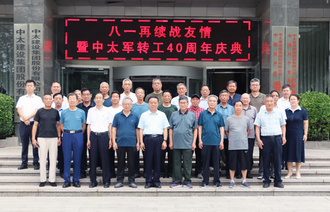 今年8月1日,是中國人民解放軍建軍98周年紀(jì)念日,在這個特殊的日子里,我們又迎來了原中國人民解放軍基建工程兵三十六支隊第352團(tuán)集體轉(zhuǎn)業(yè)40周年慶典。歡聚在我們親手建造的中太大廈,隆重慶祝中太建設(shè)集團(tuán)軍轉(zhuǎn)工40周年。會上,集團(tuán)黨委領(lǐng)導(dǎo)向為中太建設(shè)集團(tuán)的發(fā)展做出卓越貢獻(xiàn)的老領(lǐng)導(dǎo)、老戰(zhàn)友、老同志和集團(tuán)公司全體員工致以誠摯的問候和崇高的敬意!